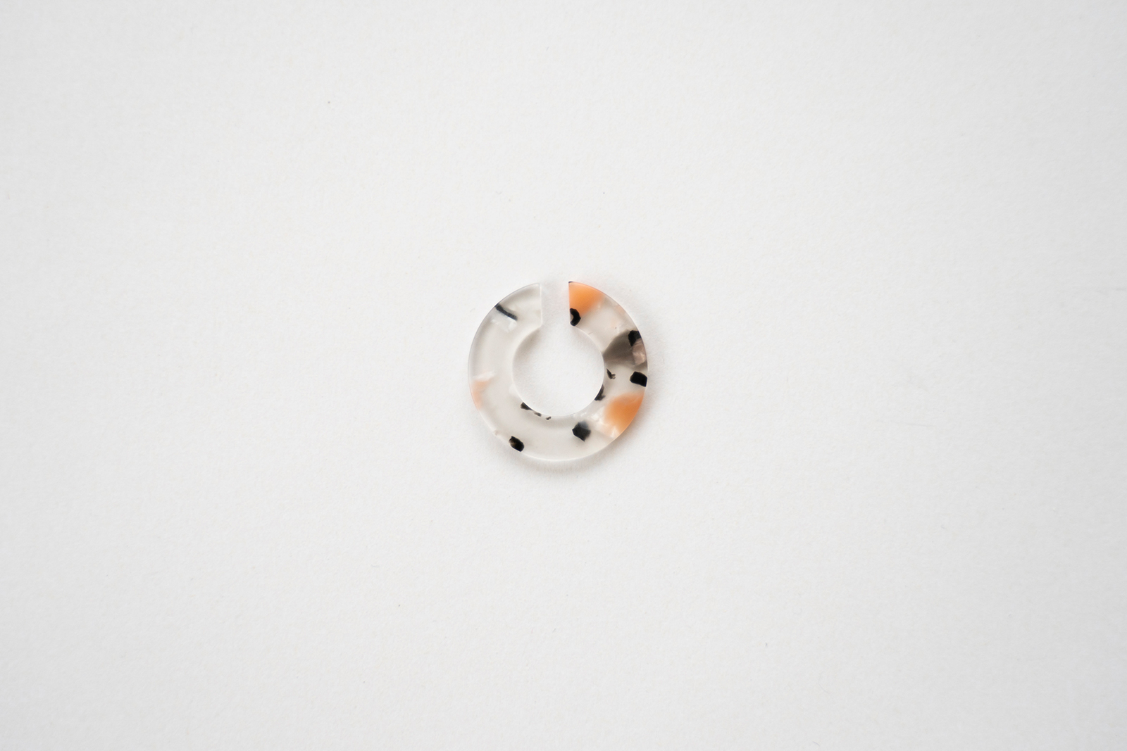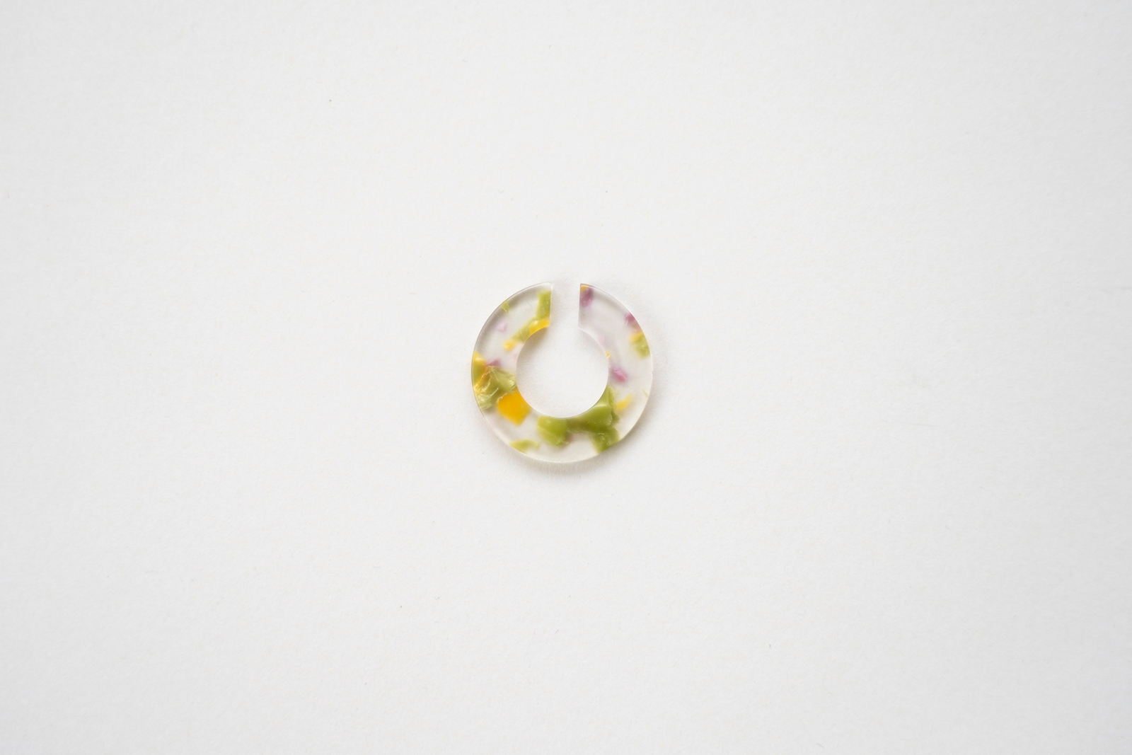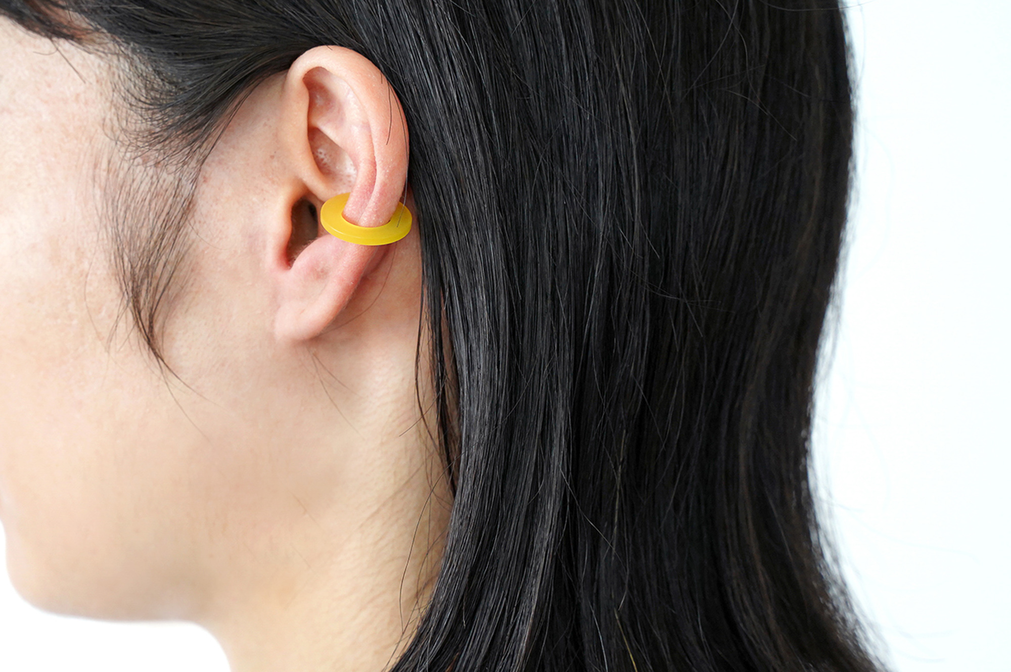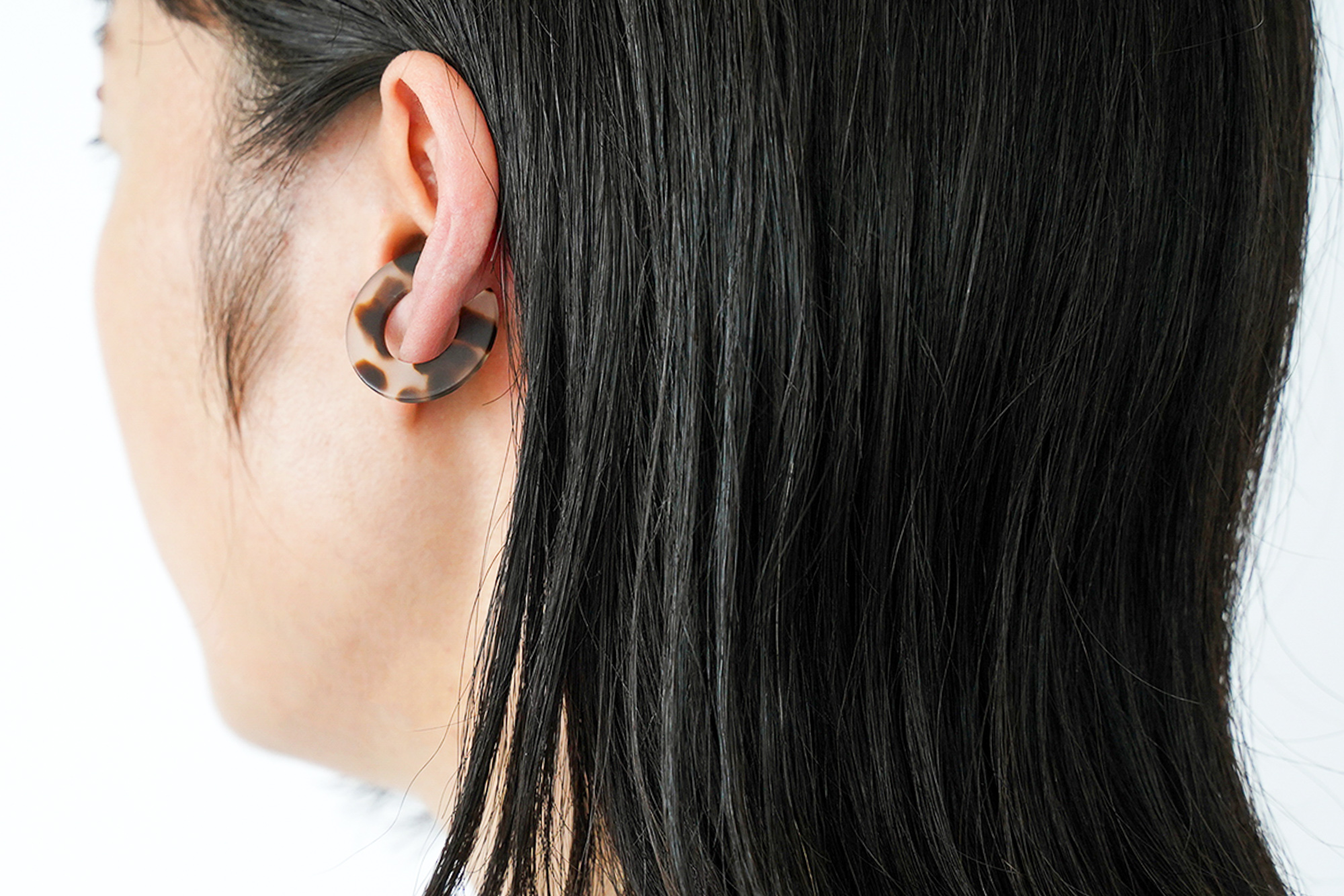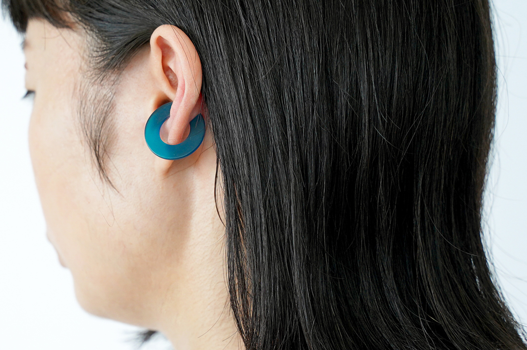 さらに、Surのイヤーカフはめがねフレームの素材でもある「セルロースアセテート」という綿花由来の植物性の樹脂でできており、石油系のプラスチックよりも柔らかい素材感で、軽く肌にそっと馴染みます。