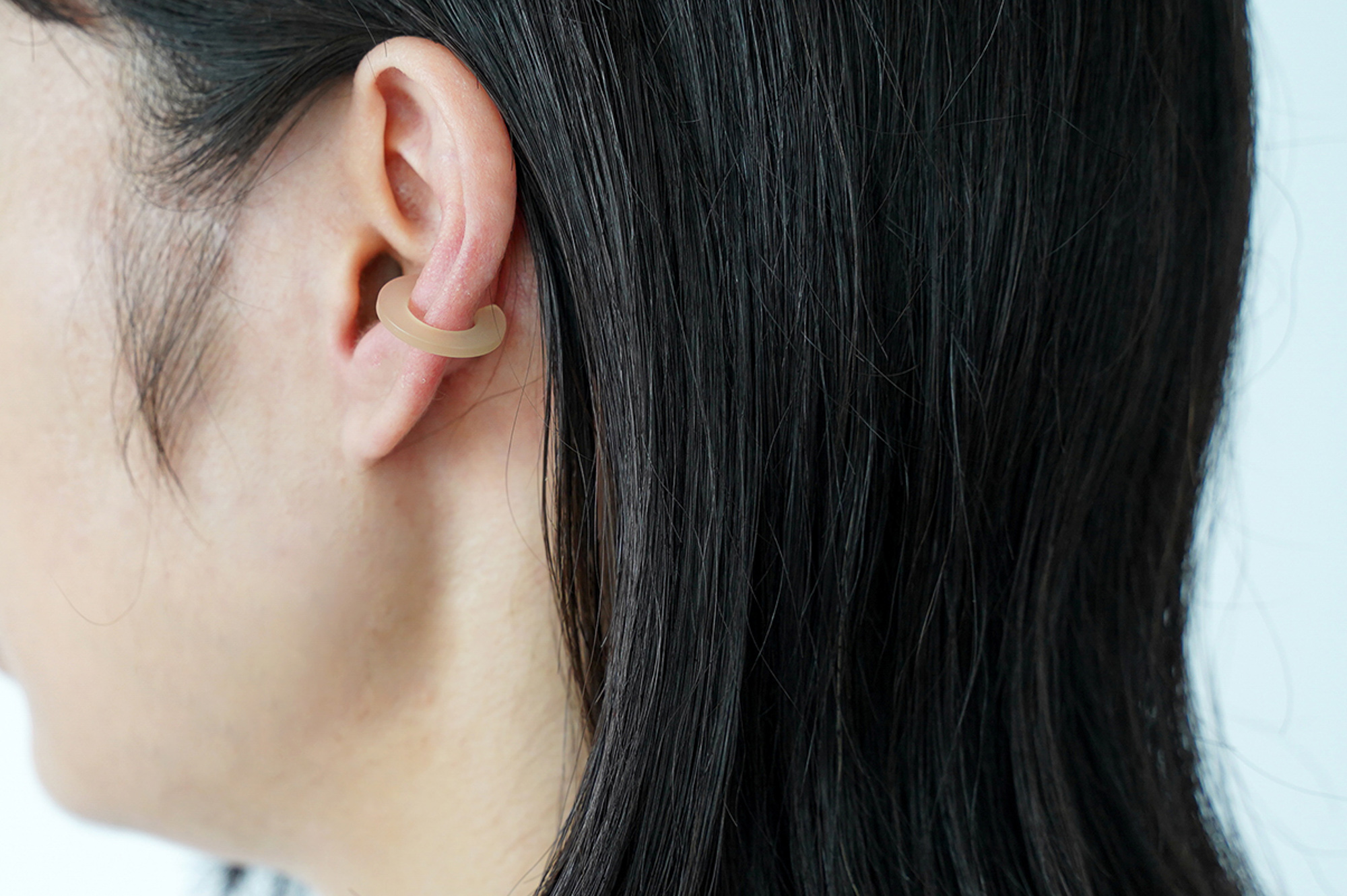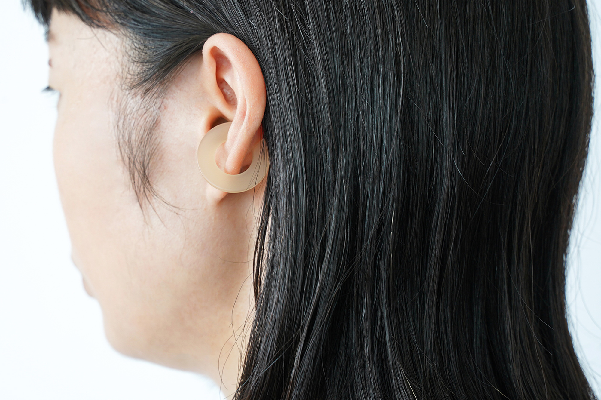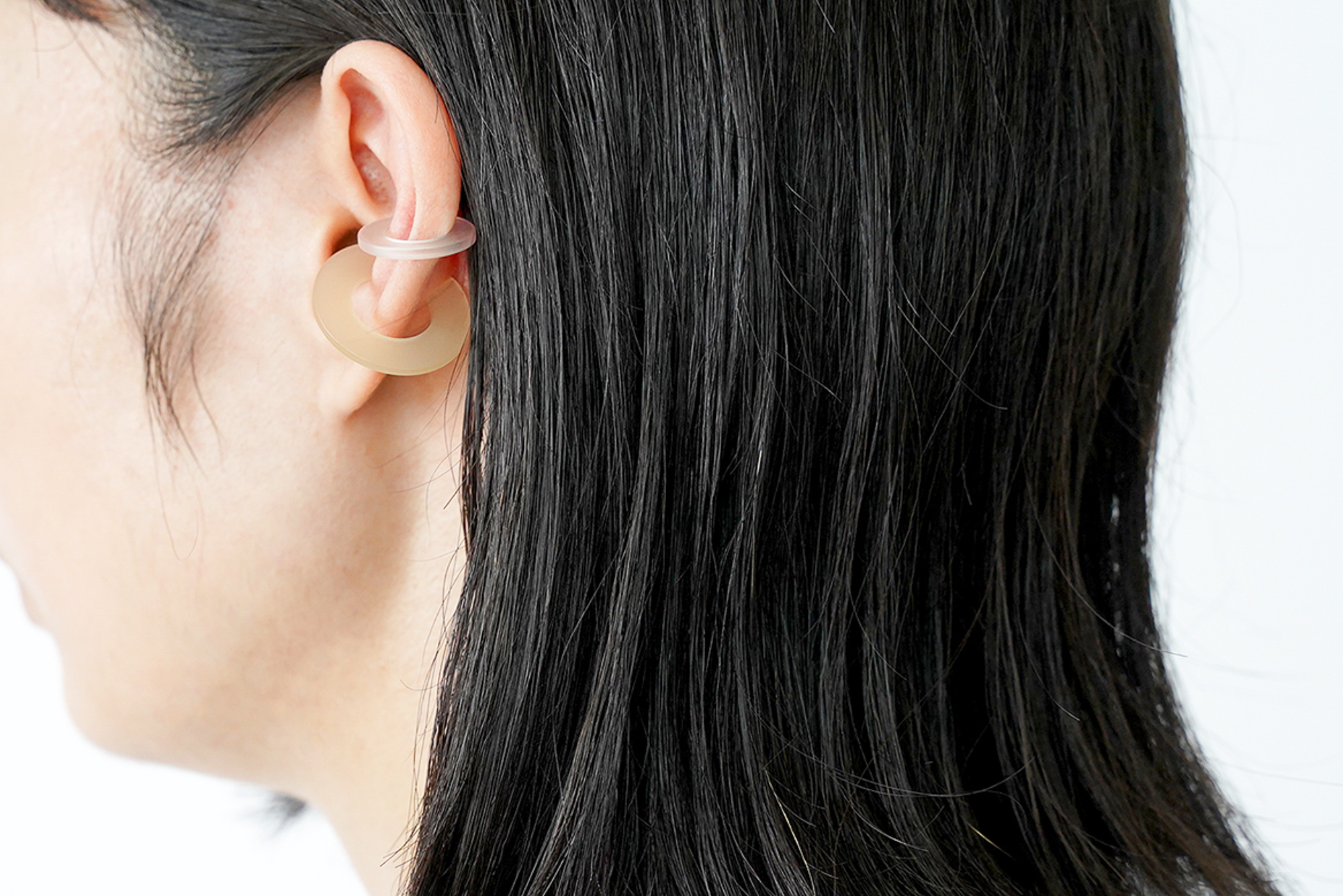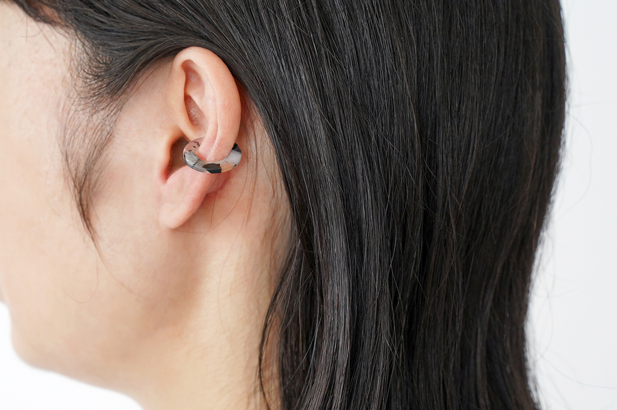 さらに、仕上げがマットになっているのも華美な印象にならず、普段イヤーカフを付けないという方でも挑戦しやすいと思います。金具がないので金属アレルギーの心配がないのもポイントです。