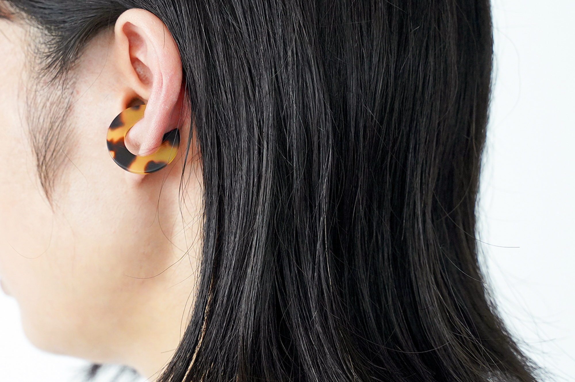 暑さ2mmほどの薄さになっていて、見た目にも装着感にもかなり軽さがあります。見る角度でも見え方が変わったり、重ねづけしても野暮ったくなりません。また、色や柄を変えると印象が変わるので、このイヤーカフだけでも色々な組み合わせを楽しんでもらえると思います。